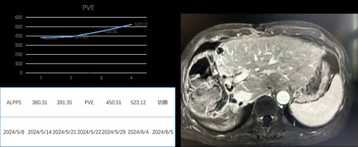 l 门静脉栓塞术后肝体积变化情况及肝切除图像